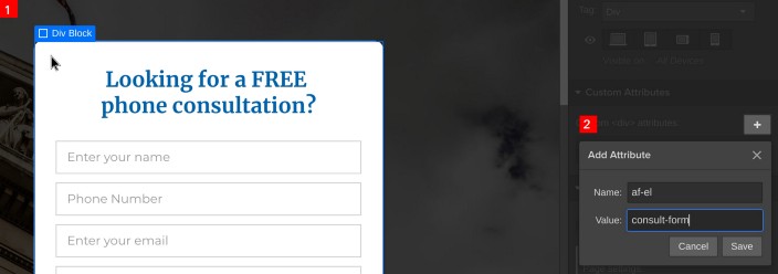 new attribute; the key’s going to be af-el (Appfairy element) and the value should be set to the